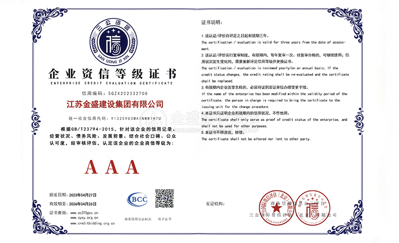 3A級(jí)資信等級(jí)證書(shū)